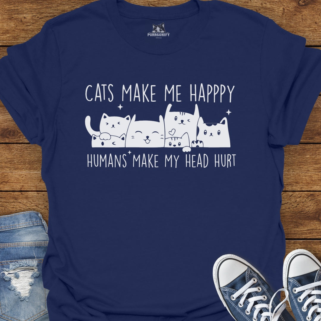 Cats Make Me Happy Humans Make My Head Hurt T-Shirt
