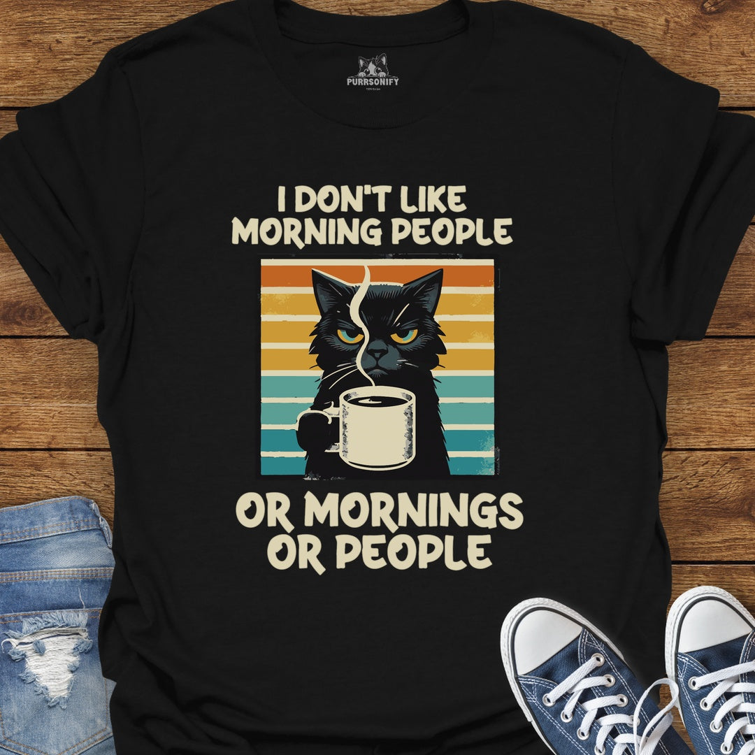 I Don't Like Morning People - Grumpy Coffee Cat T-Shirt