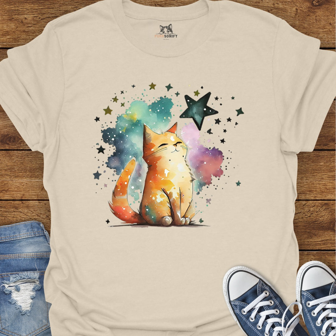 Starry Watercolor Cat T-Shirt